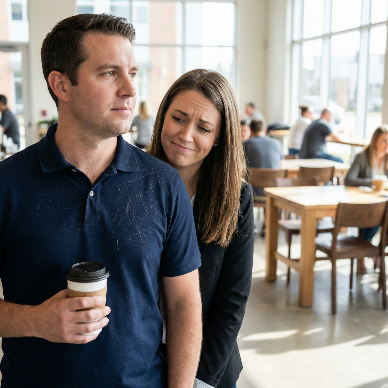 Then you see it — strands of pet hair on your shirt under the light.